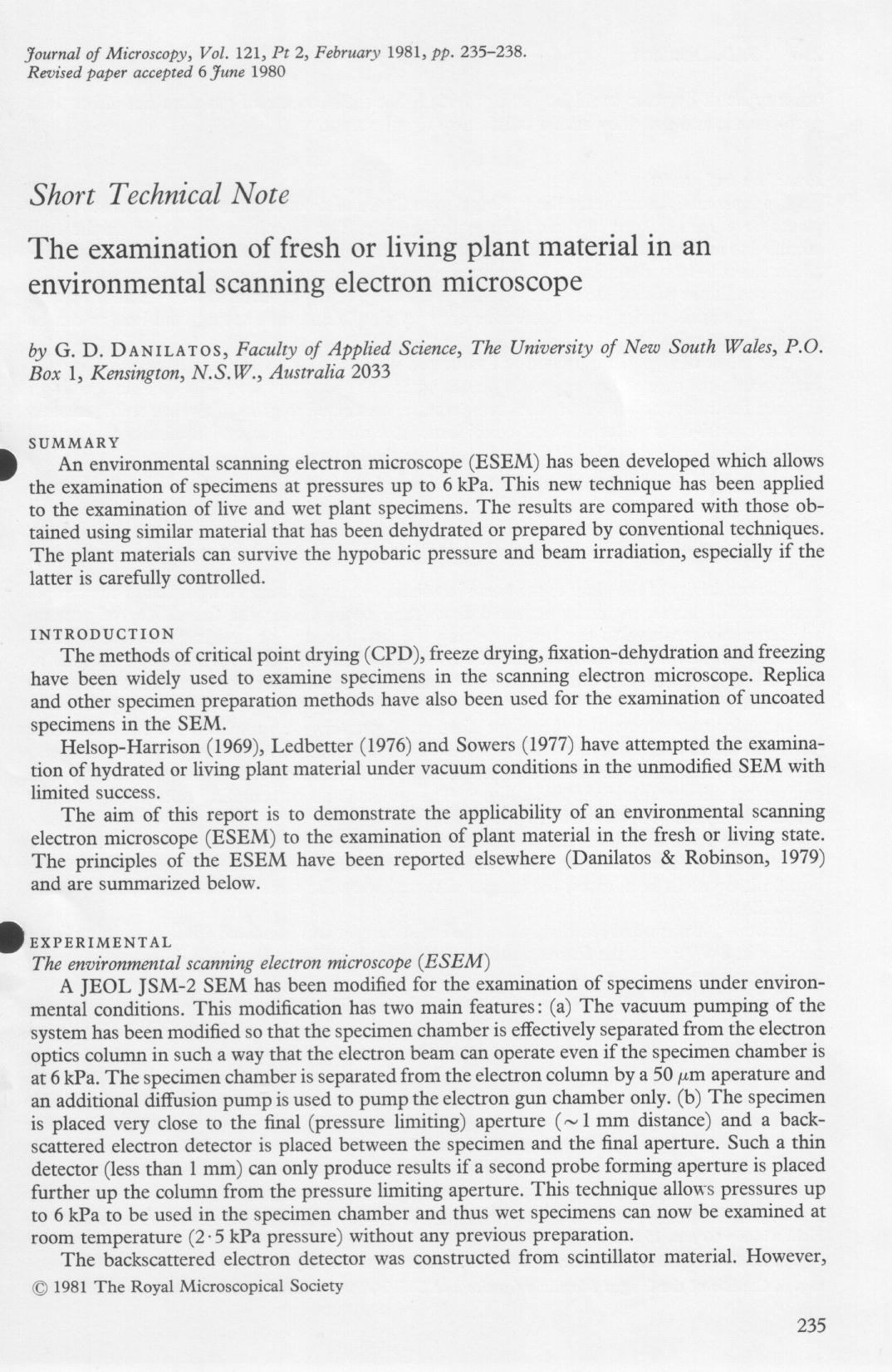 Fresh and living plants in ESEM